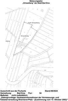 Gemäß der Beschlüsse des Stadtrates der Stadt Bad Ems vom 25.02.2025 wird für den Bereich „Grisselberg“ ein Bebauungsplanverfahren durchgeführt.