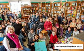 Endlich konnten die Schülerinnen und Schüler der Freiherr vom Stein Grundschule und des Gymnasiums Leifheit Campus in Nassau in der Buchhandlung Jörg das extra für diesen Tag gedruckte Buch „Ich schenk Dir eine Geschichte: Volle Fahrt ins Abenteuer“ persönlich abholen.