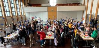 Wie wichtig die Idee eines vereinten und starken Europas ist, wird uns gerade wieder deutlich bewusst. Umso mehr freute es die Stadt Nassau, dass nach dem Ausfall der letzten Jahre endlich wieder Schulklassen in die Stadthalle eingeladen werden konnten, um gemeinsam ein stabiles und friedliches Miteinander in Europa zu feiern. Nicht nur Kinder aus der Freiherr-vom-Stein Grundschule, auch Lernerinnen und Lerner des Leifheit Campus, wurden von Stadtbürgermeister Manuel Liguori mit einem französischen Frühstück begrüßt. Nachdem die Frage aufgeworfen wurde, was Europa denn eigentlich sei, ließ es sich der Bürgermeister nicht nehmen mit den Schülerinnen und Schülern gemeinsam zu musizieren. Mit der Gitarre in der Hand stimmte er die Europahymne an und die „Ode an die Freude“ machte ihrem Namen alle Ehre. Begeistert sangen alle lautstark mit.