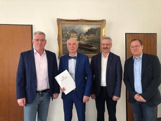 v.l.n.r. Bürgermeister Bruchhäuser, Henry Hladik, Thomas Gohmann (Personalrat), Lars Hilgert (Geschäftsbereichsleiter)