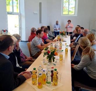 Pfarrerin Silke Funk und Anita Krebs vom Kirchenvorstand erläuterten das Konzept der Öffnung des Sakralraums für kulturelle Veranstaltungen und gemeinschaftliche Nutzung. Bei einem kleinen Imbiss in der Kirche