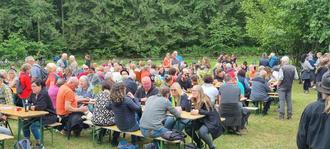 Bei angenehm milden Temperaturen versammelten sich Gäste aus Nah und Fern auf dem idyllischen Gelände, um die festliche Atmosphäre zu genießen. Der Tag begann um 10 Uhr mit einem Gottesdienst, der den offiziellen Startschuss für das gesellige Beisammensein gab. Anschließend konnten die Besucher bei frisch gezapftem Bier und kühlen Getränken kulinarische Köstlichkeiten genießen: Von knusprigen Bachforellen über deftige Würstchen und Steaks bis hin zu Pommes und Bratkartoffeln war für jeden Geschmack etwas dabei. Wer es lieber süß mochte, konnte sich an einer Vielzahl selbstgebackener Kuchen erfreuen.