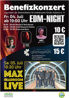Tickets hier bestellen www.ticket-regional.de/benefizfestival-arzbach sowie über die telefonische Hotline 0651/97 90 777.