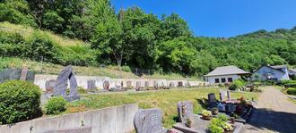 So hat man jetzt wieder einen ordentlichen Wildschutzzaun, der die Rehe davon abhalten sollte, die Bepflanzungen der Gräber abzufressen.