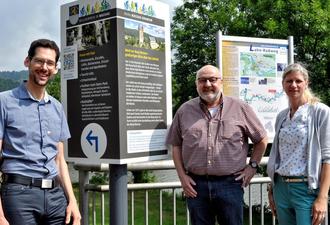Wie Ulrich Pebler gegenüber der Redaktion sagte, habe - da der Wander- und Radtourismus für Handel und besonders für die Gastronomie der Stadt im Sommer ein wichtiger Faktor ist - man als REWE / Familie Pebler dieses Projekt gerne als Sponsor übernommen. Wie Pebler weitersagte, wurden die Hinweis- und Informationsschilder von der Agentur so konzipiert, dass diese später ins Nassauer und ins kreisweite Infoportal „pick-a-blue“ (Dinge mit der digitalen Welt zu verknüpfen) integriert werden können. Text und Foto: Achim Steinhäuser