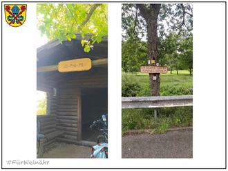 An einige Stellen im Ort und im Weinährer Wald fehlen Schilder oder sind in einem schlechten Zustand. Nun haben die Mitglieder der Rentnerband Dieter Scherer und Harald Daubach den Anfang gemacht und erste Schilder erstellt. So gibt es nun ein neues Schild für den Rundweg in Weinähr (über den Bachweg) und für die Jo-Phi-Mi Hütte.