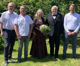 Am 20.Juni 2025 ging es dann weiter mit dem Empfang der amtlichen Gratulanten und einiger Nachbarn im eigenen Garten. Der liebevoll gepflegte Garten brachte bei herrlichem Wetter das Gefühl, in einem kleinen Paradies zu sitzen!