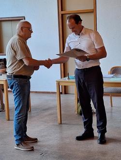 Ortsbürgermeister Claus Eschenauer ehrte Franz-Josef Fetz für seine 38-jährige Zugehörigkeit im Ortsgemeinderat.