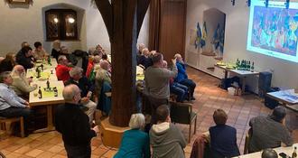 Einen schönen Vortrag hatte Oliver Lotz vorbereitet, alte Fotos und Filmsequenzen von der 650-Jahrfeier. Die Filmaufnahmen hatte Klaus Hachenthal vor einigen Jahren dankenswerterweise digitalisieren lassen. Es wurde viel gelacht und diskutiert beim Anblick dieser alten Schätzchen.