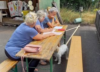 Viele Spieldetails sind noch geplant und so darf man gespannt sein, wie sich der Wagen beim Blumenkorso am Sonntag, dem 28. August 2022 präsentieren wird. Eins ist jetzt schon sicher: Es gibt viel zu stecken und es sind einige Quadratmeter Blumenfläche mit tausenden Dahlienköpfen in den unterschiedlichsten Farben zu bearbeiten, wie Kathrin, Tanja und Doris ausgerechnet haben.