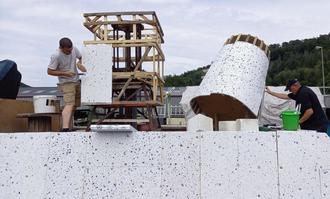 Es lässt sich schon ein wenig erkennen, was es werden soll. War das Nieverner Wagenbauer-Team doch besonders in der letzten Woche aktiv, um die diesjährige Idee eines Korsowagens „Spiel mal wieder“ zu verwirklichen. Mitinitiator und „Motor“ Peter Zöller lag es schon lange am Herzen, das Motiv in die Tat umzusetzen und so sind die Konturen eines großen Würfelbechers sowie die Form des „Cube“, dem imaginären Zauberwürfel der 1980er Jahre, die er mit „Barnie“ derzeit bearbeitet, deutlich zu erkennen.
