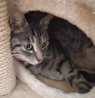 Die abgebildete grau-getigerte Katze wird seit dem 29.07.2022 vermisst. Das weibliche Tier ist in etwa 3-5 Jahre alt und nicht gechipt.