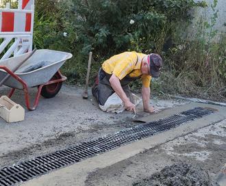 Aktuell ist eine breite Rinne am Ausgang des Welleringsgrabens gesetzt worden, um das noch an der Rhein-Taunus-Straße ankommende Oberflächenwasser abzufangen.
