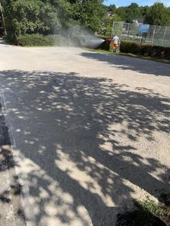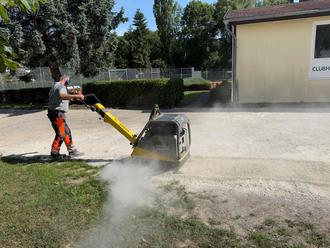 Nun wurde im Auftrag der Verbandsgemeinde von einem Bauunternehmen Kalksplitt geliefert, eingebaut und verdichtet, so dass der Parkplatz gut nutzbar ist.