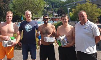 Das Highlight des Tages war aber sicherlich der „Arschbomben-Contest“ vom Dreimeterbrett. Nach unterschiedlichen und zugleich faszinierenden Arschbomben-Variationen, konnte Bürgermeister Uwe Bruchhäuser am Ende den Sieger Ibrahim Orman sowie die zwei weiteren Platzierten Markus Müller und Philipp Renger zu Ihrer Leistung prämieren.