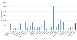 Deutschlandweit sind im Jahr 2022 ca. 58,4 TWh Strom durch Photovoltaikanlagen erzeugt worden. Damit nimmt der mittels Photovoltaik ins Netz eingespeiste Strom ca. 11 % des insgesamt eingespeisten Stroms in Deutschland ein. Im Bundesdurchschnitt sind damit 697 kWh Strom pro Einwohner mittels Photovoltaik erzeugt worden. Ein Blick auf die Verbandsgemeinde Bad Ems-Nassau lässt dabei erkennen, dass die Gemeinden Dornholzhausen, Geisig, Misselberg, Oberwies, Seelbach, und Singhofen über dem im Bundesdurchschnitt erzeugten Strom mittels Photovoltaik pro Einwohner liegen. Die Gemeinde Oberwies ist mit über 2.617 kWh erzeugtem Strom pro Einwohner der Spitzenreiter im Vergleich. Vor zwei Jahren lagen die Gemeinden Dessighofen und Miellen noch leicht über dem Bundesdurchschnitt des erzeugten Stroms pro Einwohner. Ebenfalls knapp unter dem Bundesdurchschnitt ist die Gemeinde Attenhausen mit ca. 676 kWh mittels Photovoltaik erzeugten Strom.
