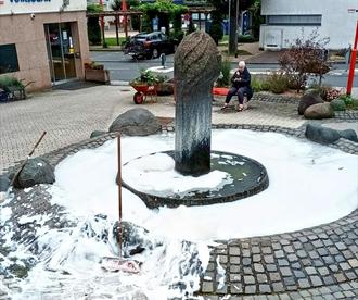 Nassau. Der Pont-Château-Brunnen vor der Nassauer Stadthalle erinnert an die Begründung der Städtepartnerschaft zwischen Nassau und der französischen Stadt Pont Château (Bretagne) im Jahre 1975. Nun haben erneut gewissenlose Menschen sich einen „Spaß“ gemacht, indem sie Waschpulver oder ähnliches in den Brunnen schütteten, welches durch die darin befindlichen Springdüsen aufschäumte. Von Spaß kann bei diesem Vorgehen aber keine Rede mehr sein, denn hier entstehen Kosten, die zulasten der Allgemeinheit gehen.
