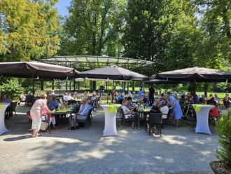 Bei frisch gebackenem Kuchen aus dem Restaurant Zum Steinpark und einer Tasse Kaffee konnten die Besucherinnen und Besucher des Senioren-Sommerfestes sich entspannen und genießen. Die Köstlichkeiten fanden großen Anklang und trugen dazu bei, dass der Nachmittag in gemütlicher Runde verbracht wurde.