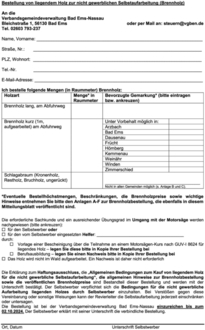 Hinweise entnehmen Sie bitte den Anlagen A-F zur Brennholzbestellung, die ebenfalls in diesem