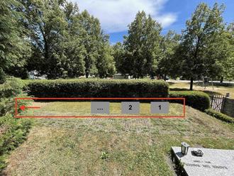 Die Urnenwiesengräber werden im unteren Gräberfeld an der Hecke beginnend vom Eingang am Spielplatz Richtung Kriegsgräber vergeben (siehe Bilder).