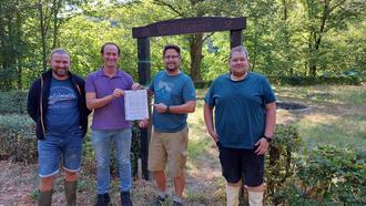 Mit Bescheid vom 29.07.2022 hat die Struktur- und Genehmigungsdirektion Nord die Erteilung einer Erlaubnis zur Entnahme von Grundwasser aus dem vorhandenen Stollen „Arzbach Bergwerk“ zur Bewässerung der Außenanlagen der Limeshalle, sowie der Fußball- und Tennisanlagen in der Zeit von Mai bis September sowie einer Erlaubnis zur Einleitung von Überlaufwasser aus dem Bergwerkstollen über einen Überlaufkanal in einen namenlosen Graben, Gewässer III. Ordnung, gestattet. Die Erlaubnis ist befristet bis zum 30.09.2037. Somit konnte nun endlich die Erlaubnis um 15 weitere Jahre gestattet werden. Nicht ohne Stolz konnten Ortsbürgermeister Claus Eschenauer, der Erste Beigeordnete Christian Christ, sowie die Bauhofmitarbeiter Marius Müller und Kevin Stein den Bescheid entgegennehmen. Gerade in trockenen Zeiten ist Wasser eines unserer höchsten Güter und wenn die Sport- und Außenanlagen derzeit ausschließlich mit Wasser aus dem Bergwerk bewässert werden können, so stellt dies ein wichtiger Beitrag zur Umwelt dar. Hier gilt der Dank der Ortsgemeinde Arzbach besonders den Bauhofmitarbeitern und Werken der Verbandsgemeinde Bad Ems-Nassau, die tatkräftig bei dem Vorhaben Unterstützung geleistet haben.
