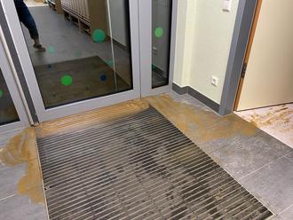 Am Morgen konnte man sich dann einen ersten Eindruck vom Ausmaß des Schadens machen. Das Außengelände muss in großen Teilen wieder neu angelegt werden. Der Eingangsbereich der Kita wurde gesäubert und die Fußleisten entfernt. Kitaleitung und Bauamt werden prüfen, ob auch hier weitere Maßnahmen erforderlich werden oder durch gute Trocknung der Schaden minimiert werden kann. Vor Ort konnte ich mir auch selbst einen Überblick verschaffen. Der Kitabetrieb wird sicherlich noch einige Tage eingeschränkt laufen. Leider wird die Nutzung des Außenbereichs länger nicht möglich sein, oder nur stark eingeschränkt.