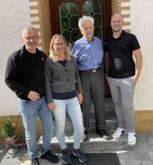 v.l.n.r.: Sohn Thomas, Schwiegertochter Peggy, Ottmar Feldenz und Ortsbürgermeister Florian Schliemann