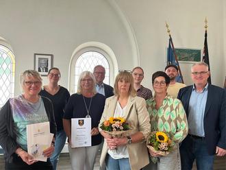 In seiner kleinen Ansprache ging Bürgermeister Bruchhäuser auf den jeweiligen Werdegang ein. Frau Sachs war nach ihrer Ausbildung seit 1983-2022 als Mitarbeiterin im Kindergarten der Lebenshilfe Rhein-Lahn in Singhofen beschäftigt. Die Einrichtung wurde 2023 von der Verbandsgemeinde Bad Ems-Nassau übernommen. Zum 31. Juli 2025 ist Frau Sachs wegen Rentenbezugs ausgeschieden. Frau Kerstin Steinhäuser war nach erfolgter Ausbildung in verschiedenen Gemeinden u.a. als Standesbeamtin tätig. 2019 wechselte Sie von der Verbandsgemeinde Vallendar zur Verbandsgemeinde Bad Ems-Nassau; hier war Sie ebenfalls im Standesamt tätig. Frau Steinhäuser ist zum 31.07.2025 wegen Rentenbezug ausgeschieden. Auf 40 Jahre Dienstzugehörigkeit kann Frau Petra Feldt-Bertram zurückblicken Sie ist seit 1985 als Reinigungskraft in der heutigen Realschule plus in Bad Ems tätig. Ebenso 40 Jahre Dienstzugehörigkeit feiert Frau Alexandra Fuhr. Seit Beginn Ihrer Ausbildung 1985 ist sie als Verwaltungsfachangestellte bei der Verbandsgemeinde Nassau (ab 2019 Verbandsgemeinde Bad Ems-Nassau) tätig. Sie ist Mitarbeiterin im Bürgerbüro Nassau.