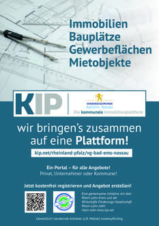 Die Verbandsgemeinde Bad Ems - Nassau gibt Privatpersonen und gewerblichen Anbietern die Möglichkeit, Gewerbeimmobilien auf dem kommunalen Immobilienportal zu präsentieren.