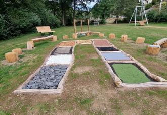 Zusätzlich bereichert zukünftig ein vom Jugendtreff Nassau neu angelegter „Garten der Sinne“ mit einem Barfußpfad, einem Balance-Pfad, einer Geräusche-Station sowie einer Wellnessliege den Spielplatz. Dieses Projekt wurde von der Studierenden und Mitarbeiterin des Jugendtreffs Tamira Schwanbeck ins Leben gerufen. Trotz wechselhaftem Wetter ließen es sich viele Nassauer:innen nicht nehmen den „Garten der Sinne“ und die Hängeseilbahn feierlich einzuweihen.