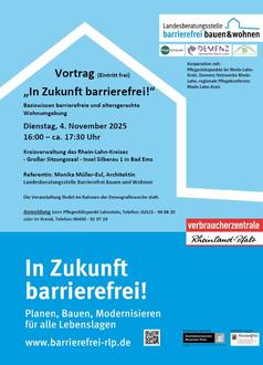In diesem Rahmen findet auch eine Veranstaltung in der Kreisverwaltung in Bad Ems statt. Im Vortrag der Landesberatungsstelle „Barrierefrei Bauen und Wohnen“ werden den Teilnehmenden grundlegende Begriffe und Anforderungen der Barrierefreiheit sowie die Möglichkeiten einer entsprechenden Anpassung der Wohnumgebung vorgestellt. Insbesondere werden die Bereiche Hauseingang, Bad, Wohnen und Küche beleuchtet.