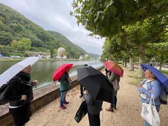Trotz des durchwachsenen Wetters ließ sich die Gruppe nicht davon abhalten, Bad Ems in all seinen Facetten zu erkunden - von den Fachwerkhäusern im alten Ems über die historischen Gebäude und Denkmäler im Kurviertel mit Quellen und der damit verbundenen Kurinfrastruktur.