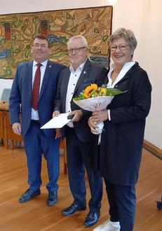 Der Landrat würdigte die besonderen Leistungen Bilos in der Ortsgemeinde Nievern, vor allem in den letzten Jahren. Seinem Engagement ist die Gründung des 2018 ins Leben gerufenen Ortsrings - dem Verbund aller Nieverner Ortsvereine - zu verdanken, dessen Vorsitz er bis 2023 inne hatte und dem er aktuell noch als 2. Vorsitzender angehört. Hier brachte er auch seine Erfahrung als Initiator und Wiederbegründer des Ortsringes in Kemmenau zur Wiederbelebung der Dorfkirmes mit ein, wo er zwischen 1990 und 1996 zudem als 2. Vorsitzender des Tennisvereins auch Organisator und Helfer bei der Errichtung der Tennisanlage mit Clubhaus war.
