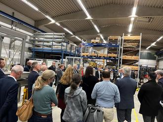 Am Ende standen Führungen durch die Produktionshallen sowie ein wichtiger Bestandsteil eines Unternehmenstreffens, das Networking, auf der Agenda. Tatsächlich bot die inspirierende Umgebung in der Produktionshalle auch einen guten Rahmen für einen geselligen, konstruktiven Austausch - begleitet durch eine kleine Weinverkostung vom Weingut „Graf von Kanitz“ und Fingerfood vom Café Restaurant im Steinpark. Es gab in diesem Rahmen auch einen wichtigen Aufruf unseres Gastes Jürgen Keiper, Noll Werkstätten GmbH zur Blutspende: Am 28. Oktober in der Koblenzer Straße 69-71 (14:00 - 19:00 Uhr) in Fachbach. Zur 70-jährigen Firmenjubiläum sucht man 70 Blutspender für den Tag!