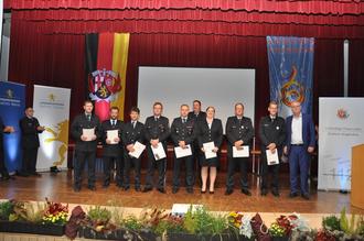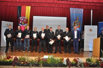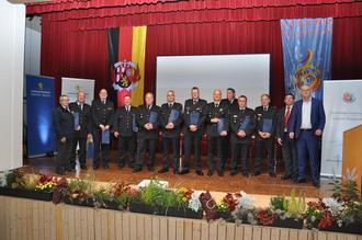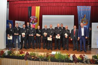Zum Abschluss der Ehrungen erhielten der ehemalige Wehrleiter Gunnar Gramsch, Singhofen, die langjährigen Wehrführer Uwe Bauer, Pohl, Olaf Spriestersbach, Singhofen, Thorsten Massenkeil, Miellen, Thorsten Schneider, Attenhausen, Carsten Reifert, Bad Ems, Karl Peter Salzmann, Nievern und Stefan Gensmann, Frücht, sowie die stellvertretenden Wehrführer Oliver Salzmann, Nievern, Guido Bergmann, Bergnassau-Scheuern, Daniel Höltken, Kemmenau, Christian Bär, Obernhof, Ingo Schneider, Attenhausen, Boris Hillenbrand, Winden und Manfred Müller, Sulzbach, die allesamt nach dem Verbandsgemeindefeuerwehrtag 2019 aus ihren Ehrenämtern ausgeschieden sind, als Dank ein Weinpräsent.