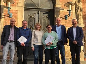 v.l.n.r. Jürgen Nickel (GB-Leiter), Volker Baum, Monika Bär (Kita-Leitung), Doris Fobbe-Reiferscheid, Bürgermeister Bruchhäuser, Thomas Gohmann (Personalrat).