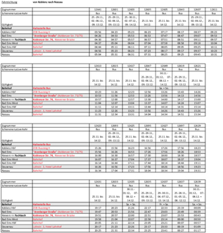 | Die genauen Abfahrtzeiten an den einzelnen Haltestellen kann dem unten abgedruckten Fahrplan entnommen werden (ohne Gewähr). |