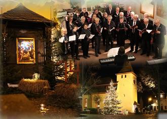 Der gemischte Chor „Friede“ Becheln beim Adventskonzert, ein Adventsfenster und der weihnachtlich geschmückte Dorfplatz, stimmen auf Weihnachten ein.
