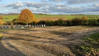 Es wird weiter am Erscheinungsbild des Friedhofes gearbeitet, Reste der alten Gräber im Eingangsbereich wurden beseitigt und neu eingeebnet. Die Gemeindearbeiter und ein ortsansässiges Unternehmen haben zwei neue Reihen für Urnengräber angelegt.