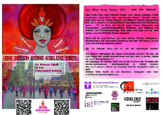 Informationen zu der Kampagne finden Sie unter: https://www.facebook.com/One-Billion-Rising-Koblenz-248155428684022/, auf Instagram (@onebillionrisingkoblenz), Facebook und http://www.onebillionrising.de/