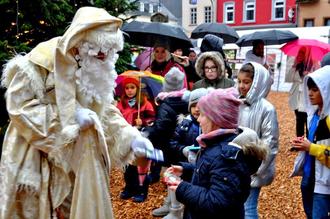Adventsmarkt rund ums historische Rathaus der Stadt lockte viele Besucher an - Weihnachtsmann war bei den Kindern der Star