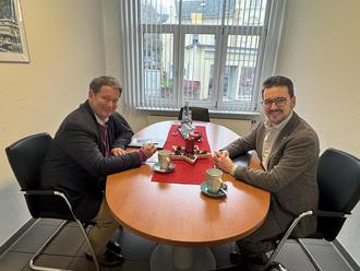 Rüdiger von Stengel (v.l.) und Stadtbürgermeister Oliver Krügel beim jüngsten Termin im Besprechungsraum des Stadtbüros