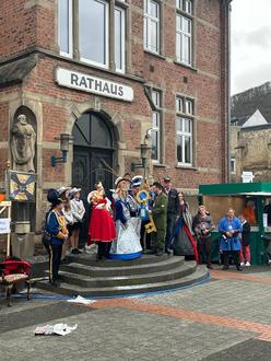 Die Emser Karnevalsgesellschaft (EKG) hatte schwere Geschütze aufgefahren. Das Prinzenpaar mit Heiko II und Michaela II kam mit zahlreichen Aktiven auf den Rathaushof der Verbandsgemeinde und brachte Verstärkung aus Arzheim, Lahnstein und Fachbach mit. Kanonier Fritz Bingel feuerte aus allen Rohren und landete den ein oder anderen Wirkungstreffer durch das geöffnete Fenster, an dem die beiden Bürgermeister Uwe Bruchhäuser und Oliver Krügel erbitterten aber nur kurzzeitigen Widerstand leisteten. Nach nicht einmal fünf Minuten ergab sich mit Uwe Bruchhäuser bedingungslos. Oliver Krügel handelte für seine Kapitulation allerdings ein 5l-Fässchen Bier aus und ergab sich kurze Zeit später.