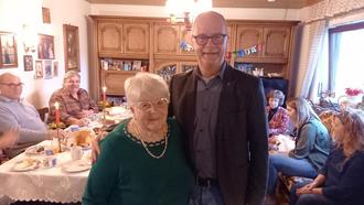 In familiärer Runde konnte ich dieser Tage Brigitte Lotz vom Hofgut Bergfried auf dem Hühnerberg zu ihrem 90. Geburtstag gratulieren. Im Kreise ihrer drei Töchter, Schwiegersöhnen und zusammen mit fast allen 11 Enkeln und Urenkeln sowie Nachbarn war es eine muntere Truppe, in der sich die vitale 90jährige bei Kaffee, „Frankfurter Kranz“ und anderen Kuchenspezialitäten sichtlich wohlfühlte. Die Dinge für ihren Haushalt regelt Frau Lotz fast alle noch selbst, fährt mit ihrem PKW zum Einkauf und freut sich nach eigener Aussage – wenn es draußen „wärmer und gemütlicher wird“ - auch bald wieder auf einen Besuch in der Emser Therme. Interessiert ist sie an allem, was um sie herum und in Nievern passiert und erhält sich dadurch – wie sie erklärt – auch ihre geistige Frische. Die Frische der Natur auf dem Nieverner Hühnerberg tut dabei ihr Übriges. Also beste Aussichten auf weitere Jahre im Kreise ihrer großen Familie, die ihr die Ortsgemeinde und alle Bürgerinnen und Bürger von Herzen wünschen.