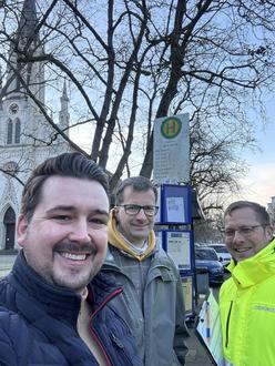 Haltestellen im Blick, vor Ort „Selfie“ von Stadtbürgermeister Krügel (li.) mit Mario Pott VCD Deutschland - Mitte) und Ordnungsamtsleiter Lars Hilgert (re.)