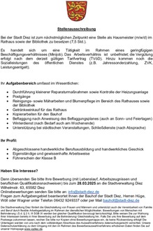 Onlinebewerbungen senden Sie bitte an: info@stadt-diez.de