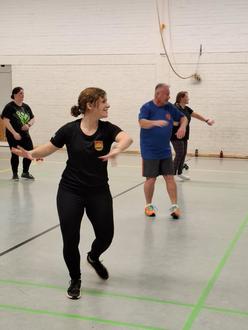 Beim Zumba verbindet Trainerin Meike seit 2022 Tanz, Fitness und gute Laune zu einem energiegeladenen Workout. Der Verein legt dabei besonderen Wert darauf, dass Freude an der Bewegung und Gemeinschaft im Mittelpunkt stehen.