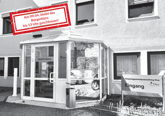 Die Zentrale der Verbandsgemeindeverwaltung Diez bleibt während der gesamten Zeit besetzt und ist telefonisch sowie persönlich erreichbar.