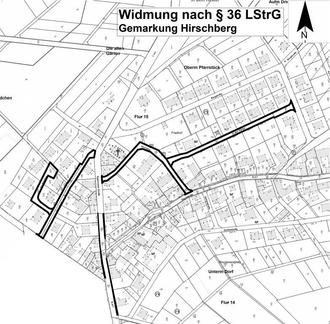 Gemäß § 36 Landesstraßengesetz (LStrG) für Rheinland-Pfalz vom 01.08.1977, in der derzeit geltenden Fassung, und aufgrund des Beschlusses des Gemeinderats Hirschberg vom 03.04.2023 werden die nachstehend genannten Straßen dem öffentlichen Verkehr gewidmet.
