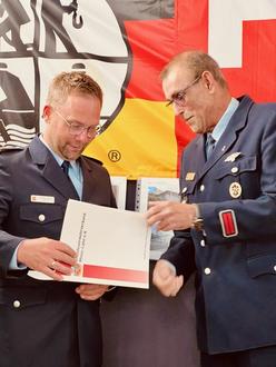 Ein weiterer Höhepunkt war die feierliche Übergabe eines Schutzpatrons durch Ortsbürgermeister Oliver Lankes. Die symbolträchtige Geste soll die Kameradinnen und Kameraden auf allen Wegen begleiten und ihnen Zuversicht spenden.